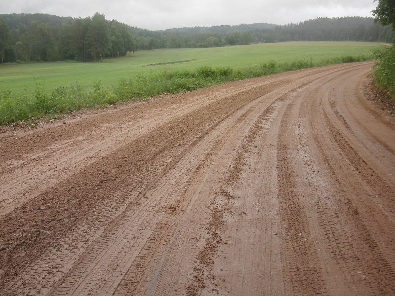 Nach 3 Wochen der erste Regen auf der Fahrt von Riga ins Lettische Binnenland.